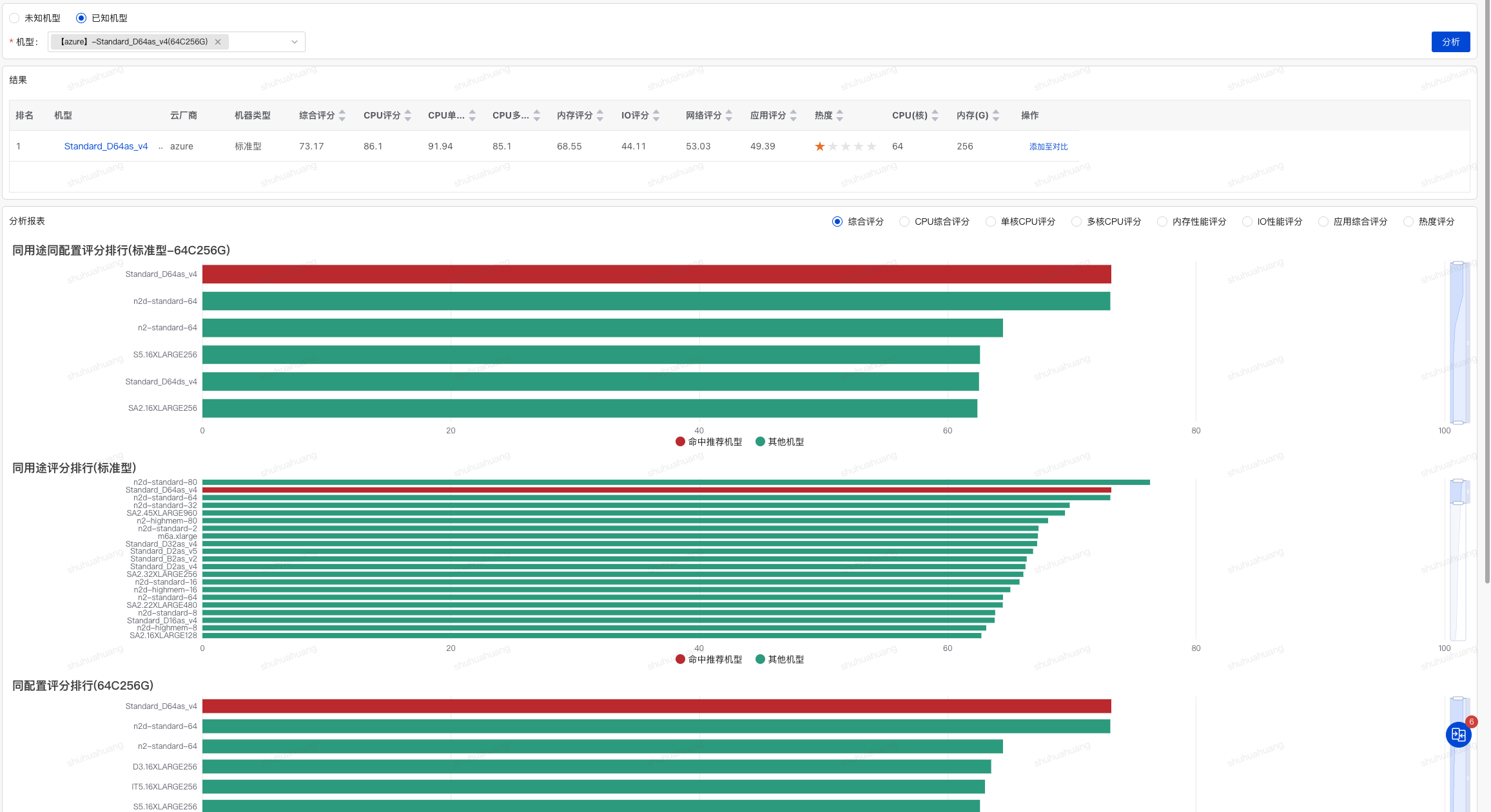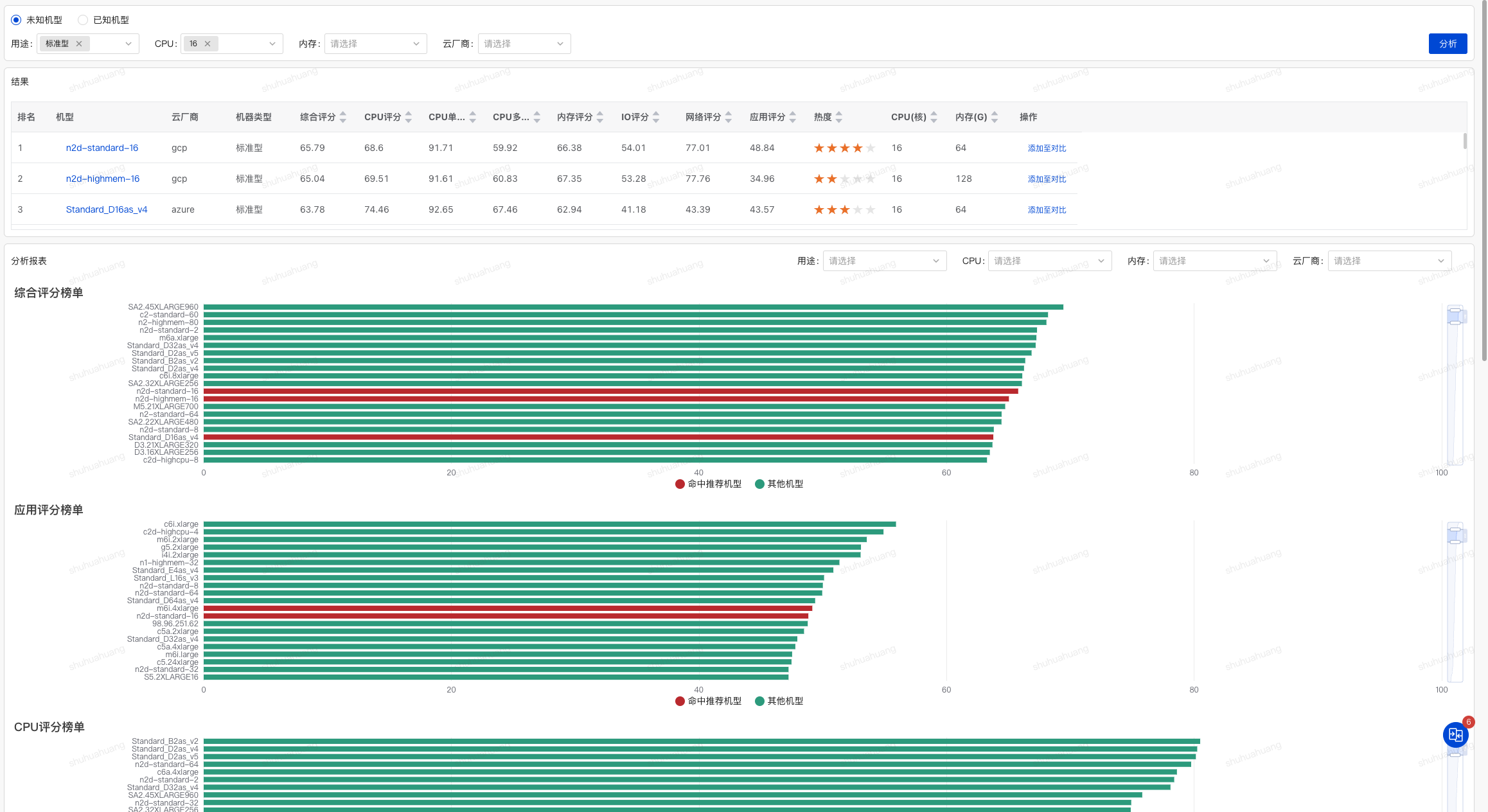 对于未知机型的情况下,用户可以选择目标机型的用途、CPU核数、内存和云厂商,系统根据已经测试的机器进行推荐。