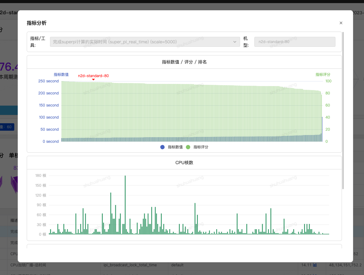 - 能力分布雷达图:将机型的CPU、内存、网络、应用、IO和成本指标换算成排名查看能力分布情况